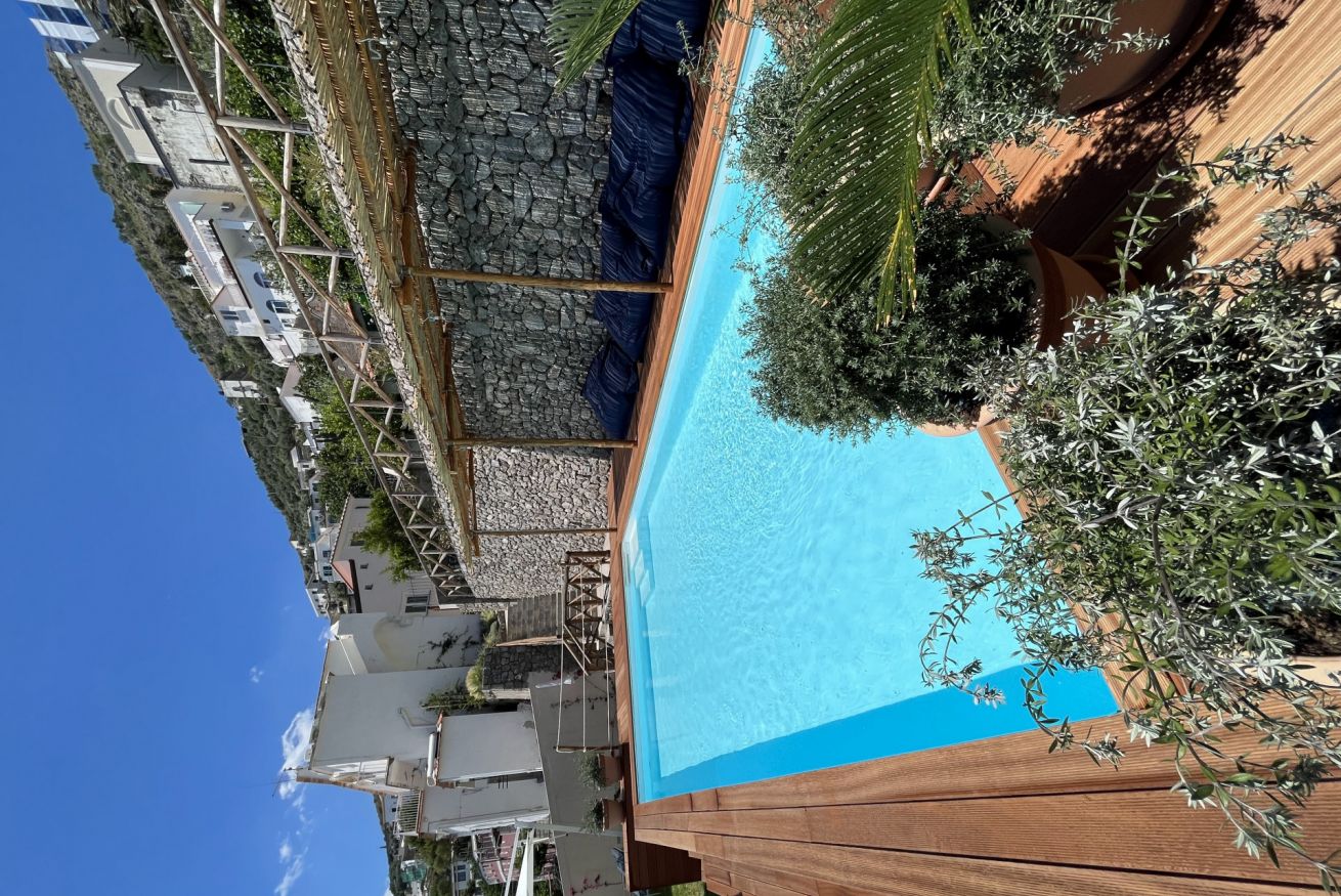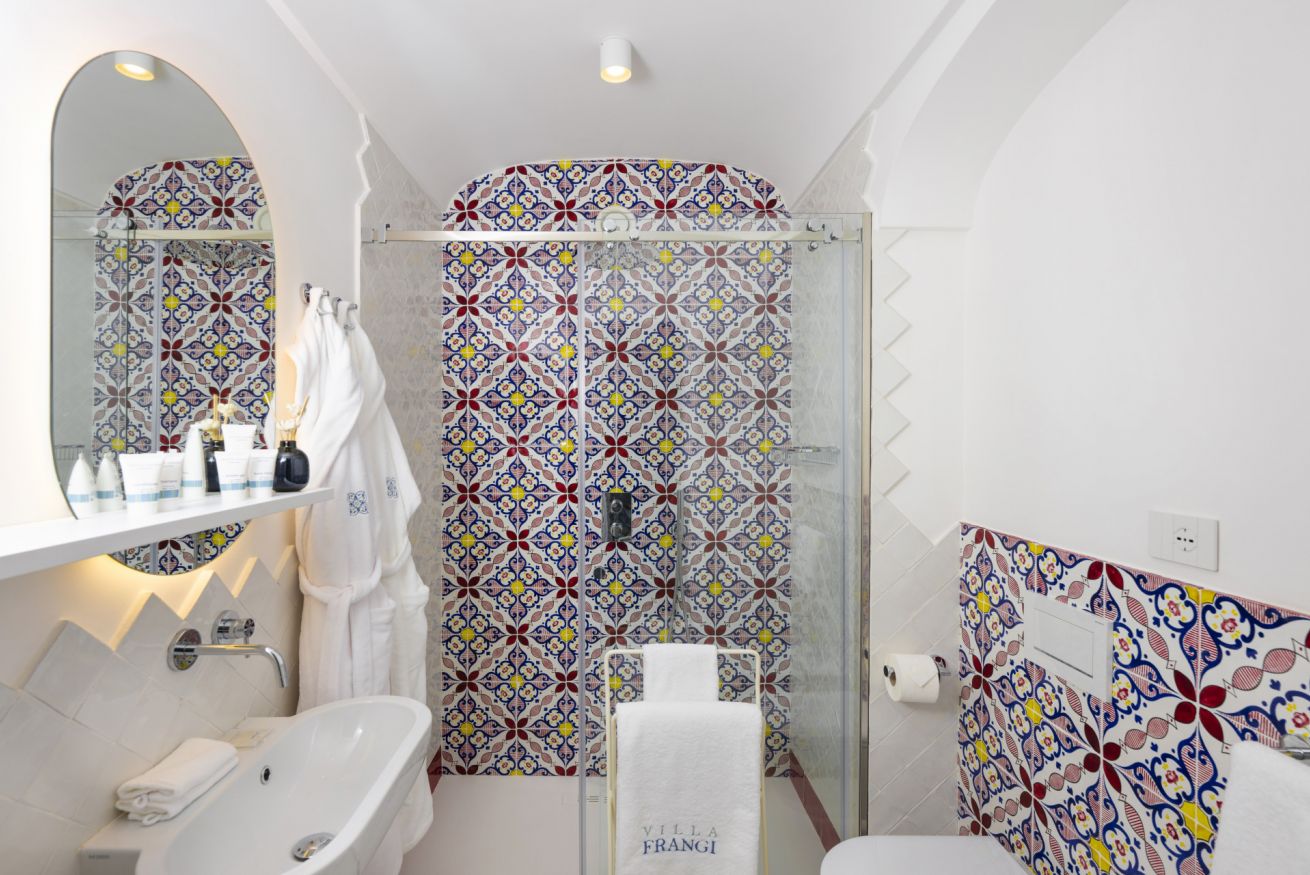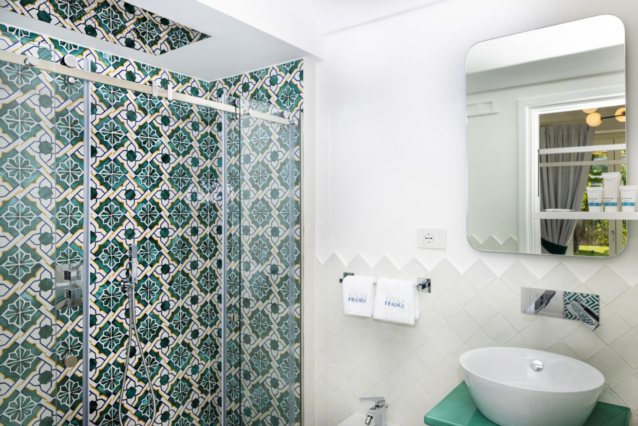 Villa Frangi dispone di cinque camere matrimoniali con servizi privati, una cucina professionale full equipped, un ampio salone, una spa con vasca benessere a temperatura regolabile, sauna, doccia emozionale e bucket shower. Il tutto circondato da ampi spazi verdi terrazzati con vista panoramica sul mare, ricchi di essenze e profumi tipici della macchia mediterranea.