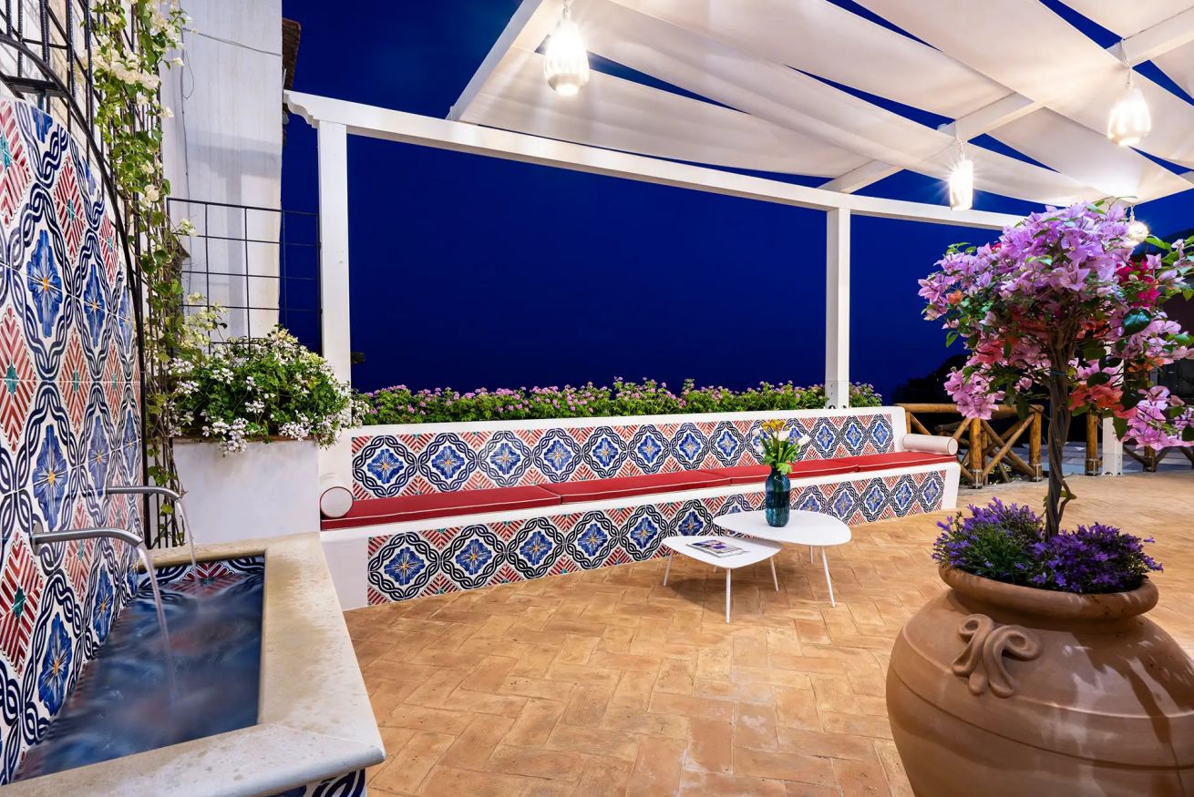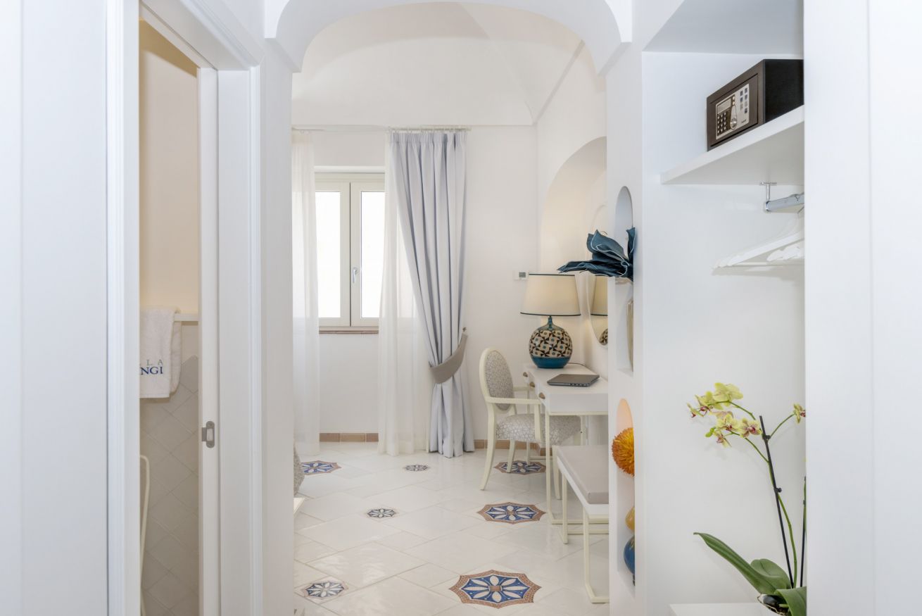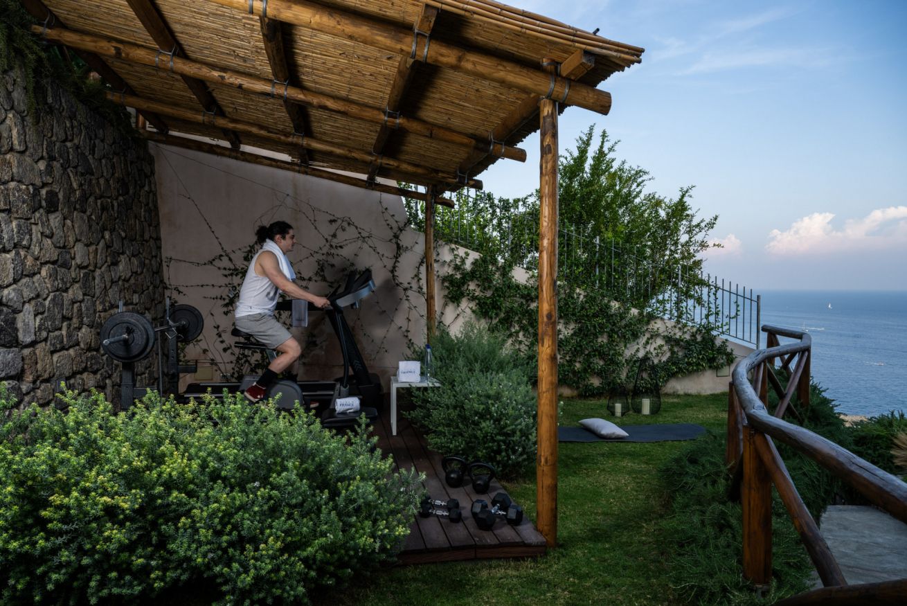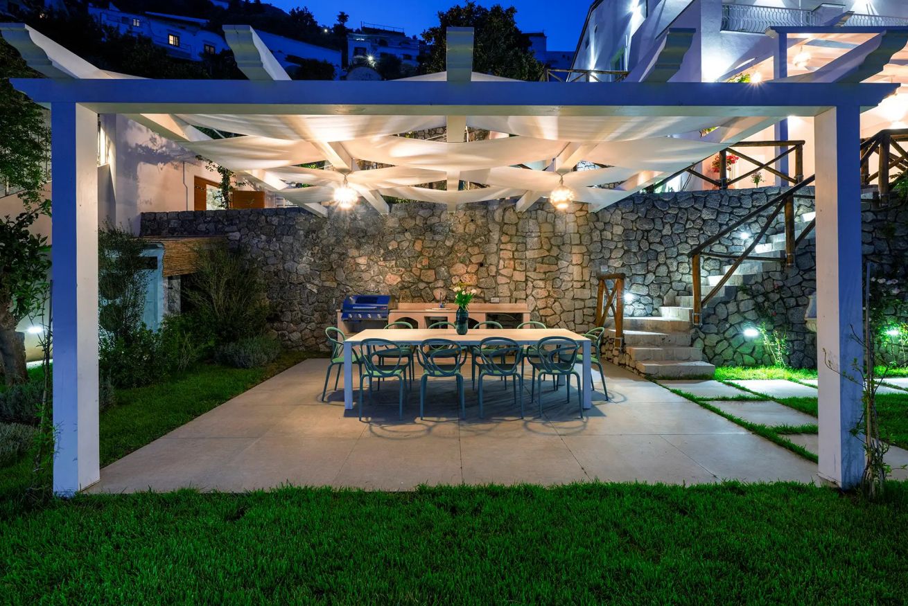 Villa Frangi dispone di cinque camere matrimoniali con servizi privati, una cucina professionale full equipped, un ampio salone, una spa con vasca benessere a temperatura regolabile, sauna, doccia emozionale e bucket shower. Il tutto circondato da ampi spazi verdi terrazzati con vista panoramica sul mare, ricchi di essenze e profumi tipici della macchia mediterranea.